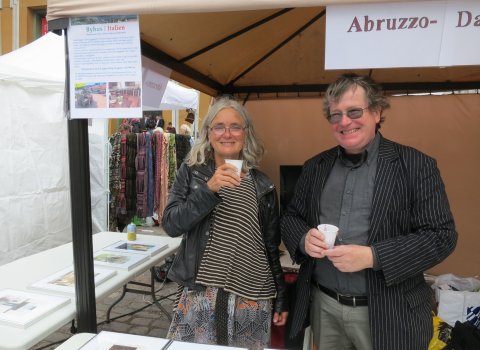 Nedenstående billede er fra markedsdagen i 2013, hvor fotografen Karen Mygind deltog med en udstilling af sine fotografier fra Pratola og omegn.